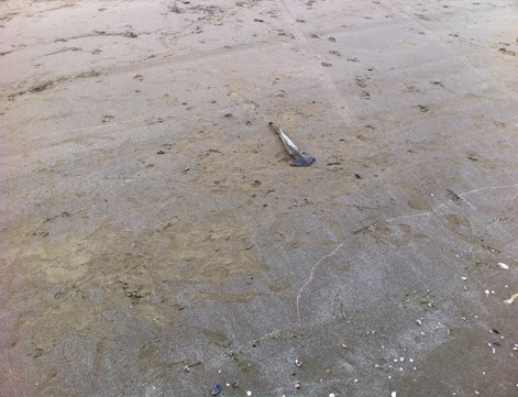 2011年7月3日に本須賀の九十九里浜に行ったところ、鮫が打ち上げられていました。頭が横に広いハンマーヘッドシャークこと、シュモクザメです。